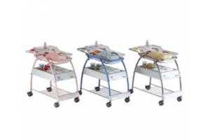 • роватка для новорожденных – это высококачественное оборудование, обеспечивает новорожденному все условия, необходимые для полноценного отдыха в первые часы и дни жизни. Каркас из металлических дюймовых трубок, окрашенный в песочный, голубой, розовый, желтый или зеленый цвет (на выбор)или хромированный, с четырьмя колёсами (Ø 3”), два из которых с блокировкой Механизм установки наклонного положения по Тределенбургу.